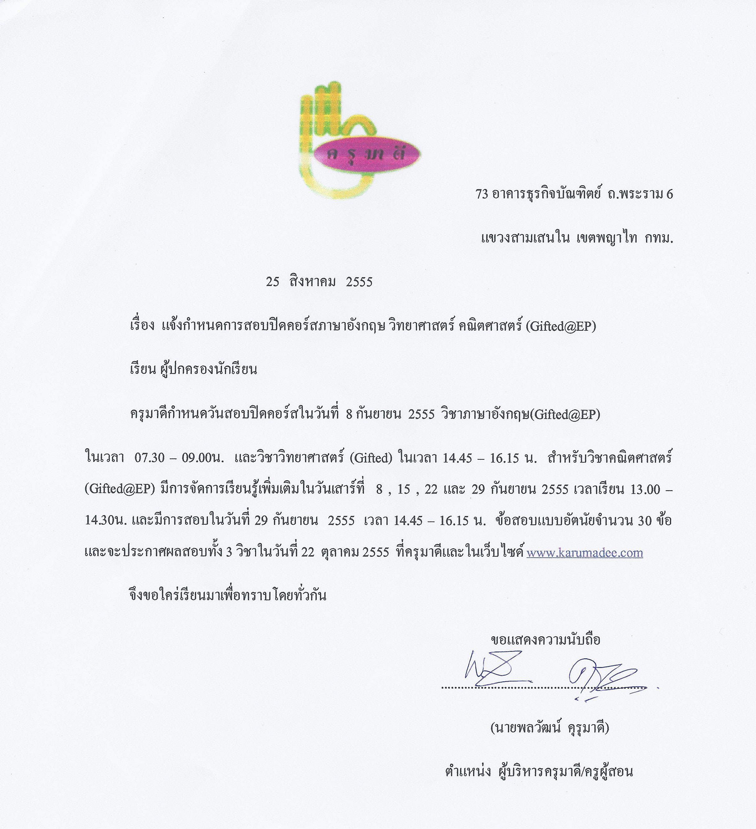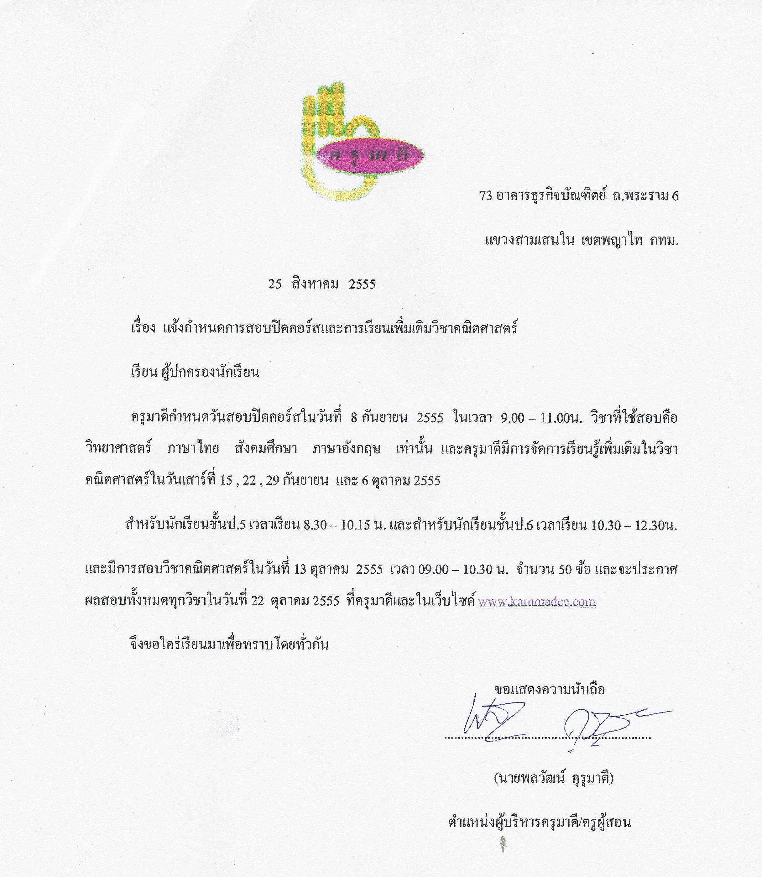 ครุมาดี ที่ตั้ง 73 อาคารธุรกิจบัณฑิตย์ ถนนพระราม 6 สามเสนใน พญาไท กรุงเทพฯ 10400 Tel.(086) 3010909, (02) 6185569
